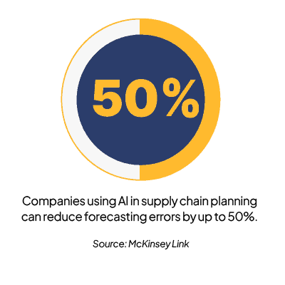 Companies using AI in supply chain planning can reduce inventory levels by 20–30% while increasing product availability.